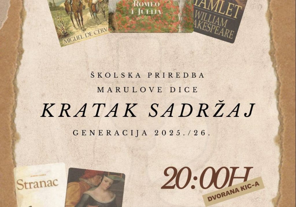 Uz zvonke glasove koji će vas raspjevati i izložbu likovnih radova, u predstavi “Kratak sadržaj” donose priču o svakodnevnom životu kroz likove svjetskih klasika.
