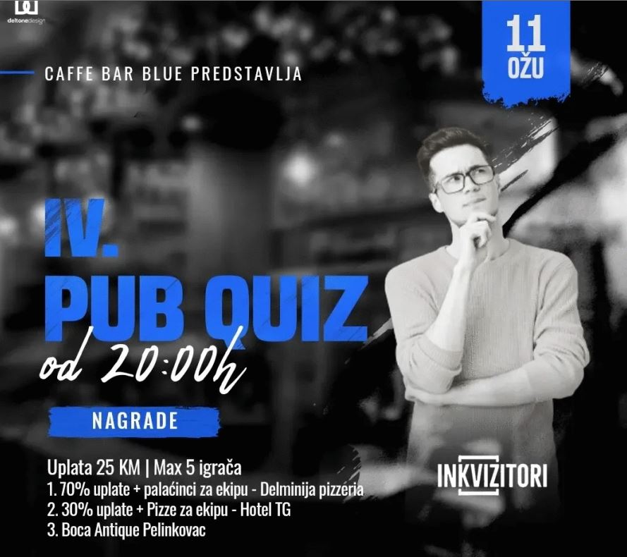 U petak, 11. ožujka u u tomislavgradskome Caffe baru Blue održat će se IV. pub kviz.