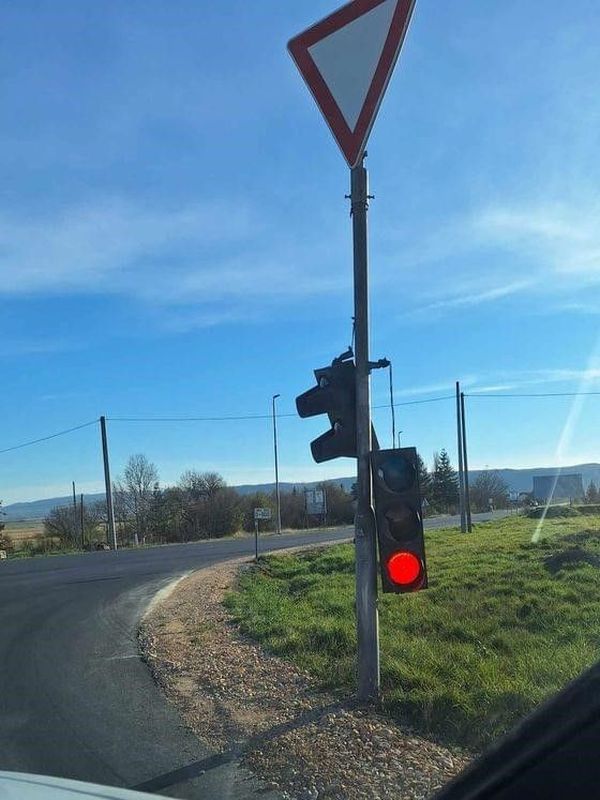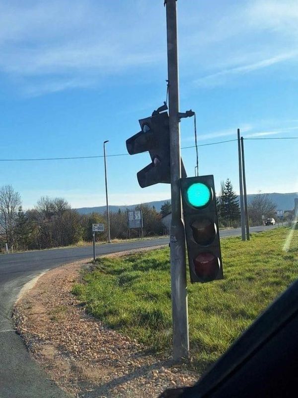 Već nekoliko dana na obilaznici, raskrižje na Kolu, semafori rade na čudan način. Naime, nakon nedavnog asfaltiranja i uređenja navedenoga raskrižja netko je udario u stup na kojem se nalazi semafori koji reguliraju desno odvajanje sa zaobilaznice na Bobaru, pri čemu su semafori otpali s nosača i ostali visjeti na kabelima. Oni i dalje rade, uredno se mijenjaju svijetla: crveno-žuto-zeleno, samo što je sad zeleno na vrhu a crveno na dnu. Pored toga, jaka bura koja puše posljednjih dana dodatno doprinosi njihovom njihanju pa je čudno kako se još drže i uz to i rade.