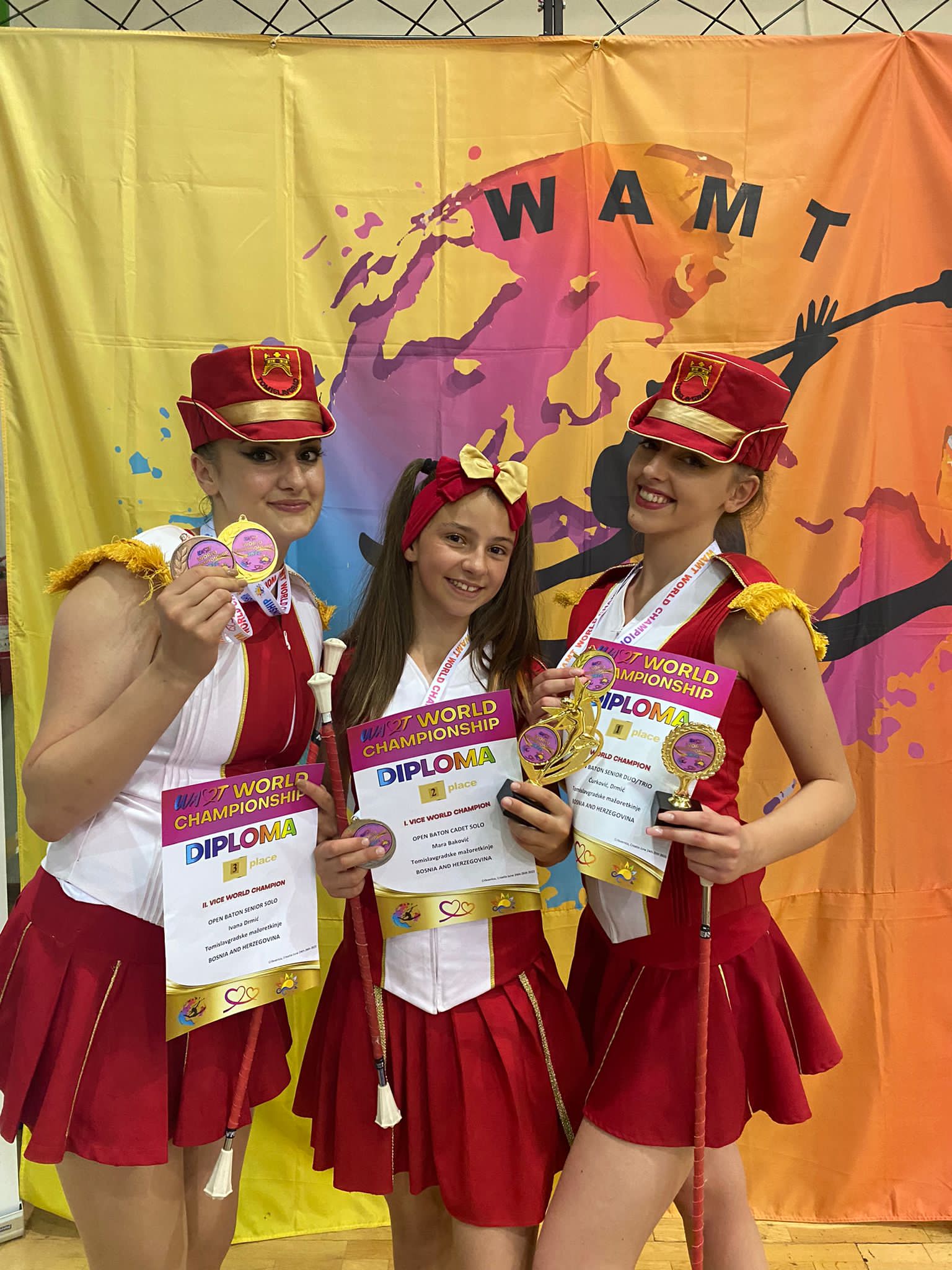 Jučer je završio prvi dio Svjetskog prvenstva u mažoret plesu i twirlingu, u kojem smo osvojile medalje u sve 3 kategorije u kojima smo se danas predstavljale, a to su :
