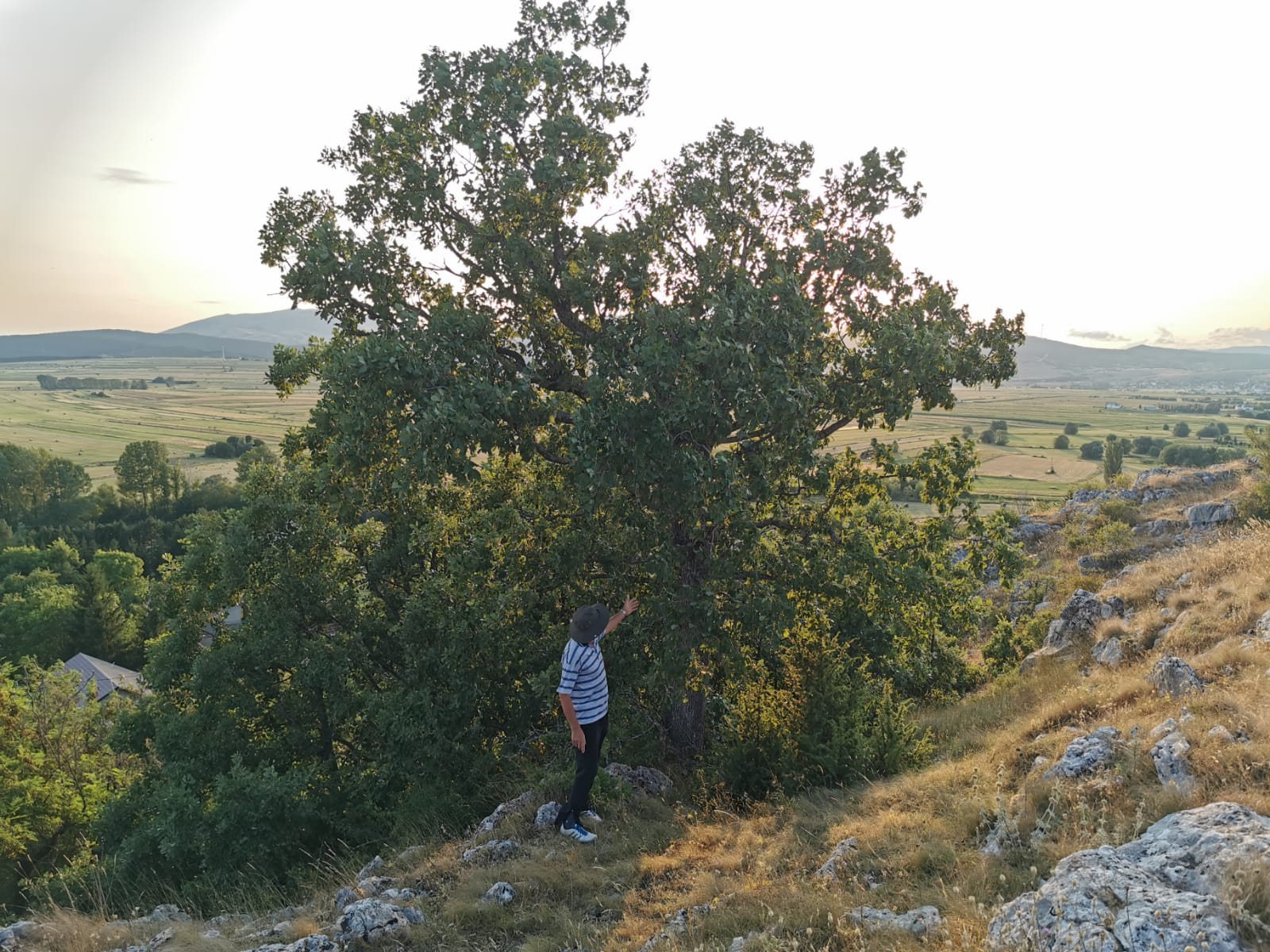 Na tom putu pokazao nam je i brojno drveće koje je zasadio, od borova, preko oraha pa do nekoliko trešanja. Vidjeli smo i stoljetni hrast za koji kaže da je simbol sela.