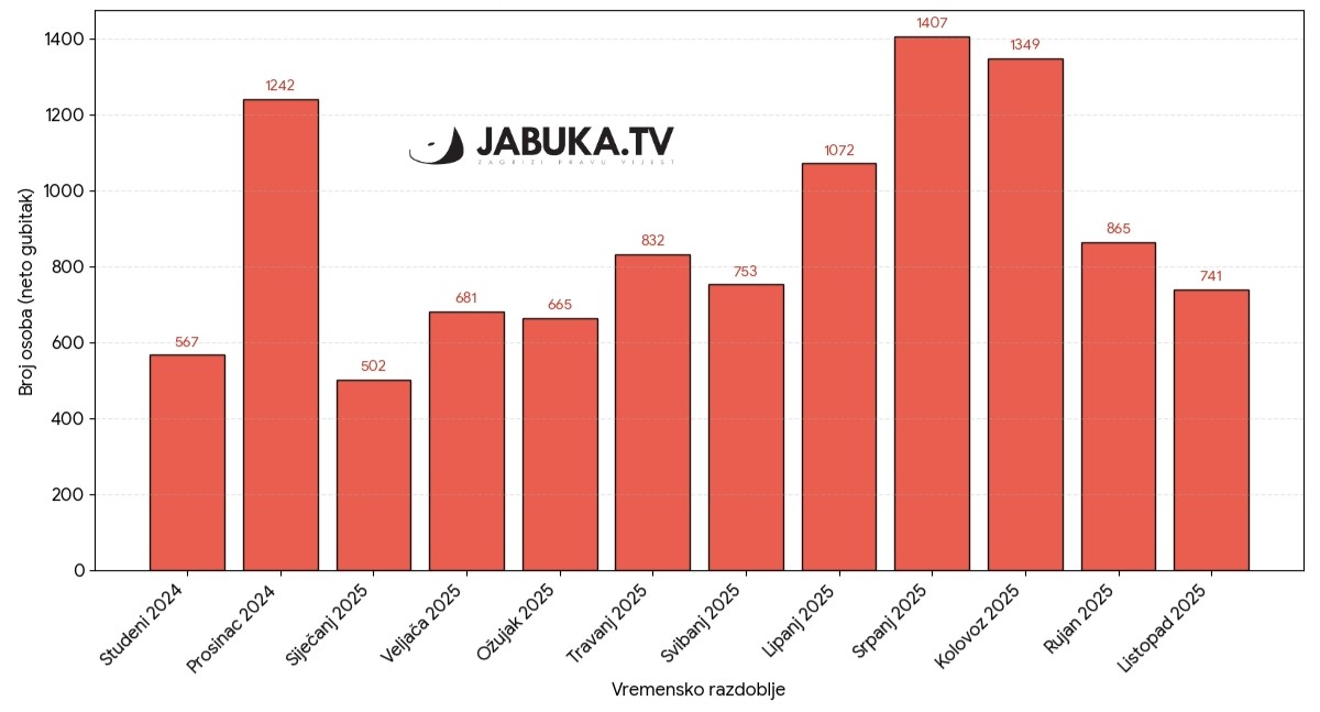 Podaci za 12 mjeseci (zaključno s listopadom 2025.) pokazuju porazan trend za hrvatsku dijasporu. U niti jednom od promatranih mjeseci broj doseljenih Hrvata nije bio veći od broja onih koji su Njemačku napustili.
