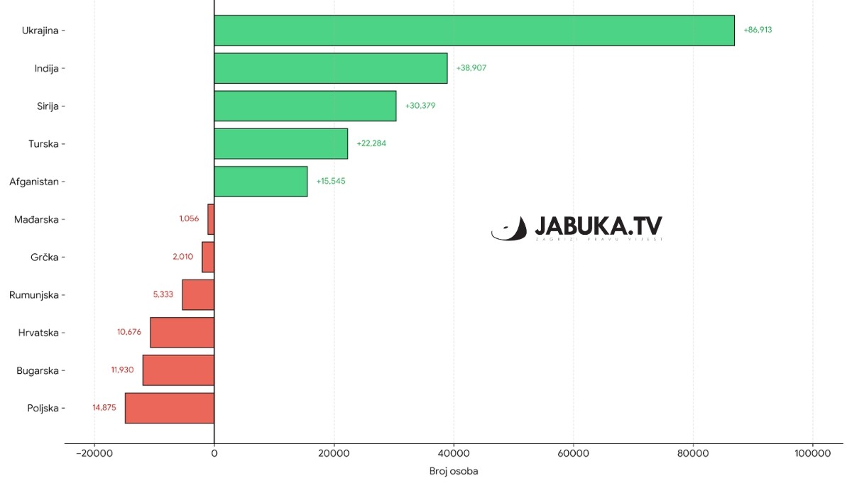 Dok Njemačka i dalje bilježi ukupni porast stanovništva, taj rast isključivo generiraju državljani zemalja izvan EU-a, dok se broj Hrvata, ali i drugih Europljana, sustavno smanjuje, navodi Jabuka.tv.