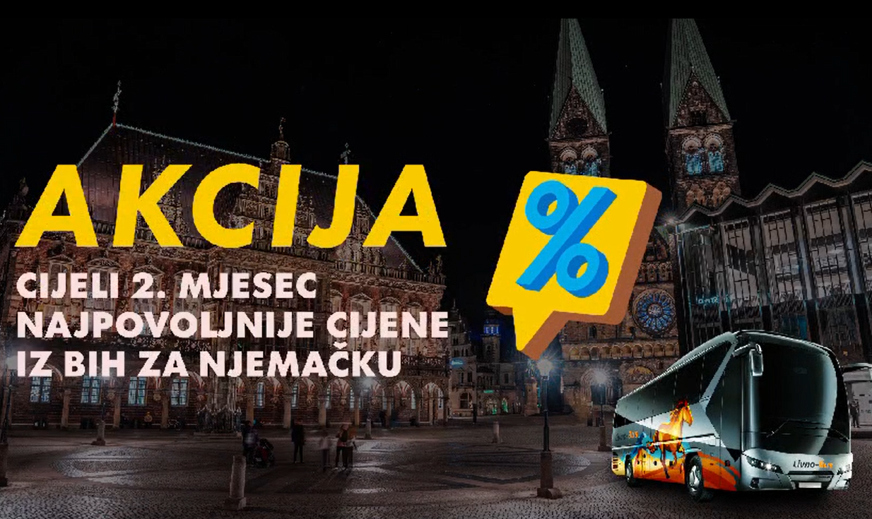 Tijekom cijele veljače Livno – Bus nudi najpovoljnije cijene putovanja na bilo kojoj relacija iz BiH prema Njemačkoj ili iz Njemačke prema BiH. Cijena samo 40 €!