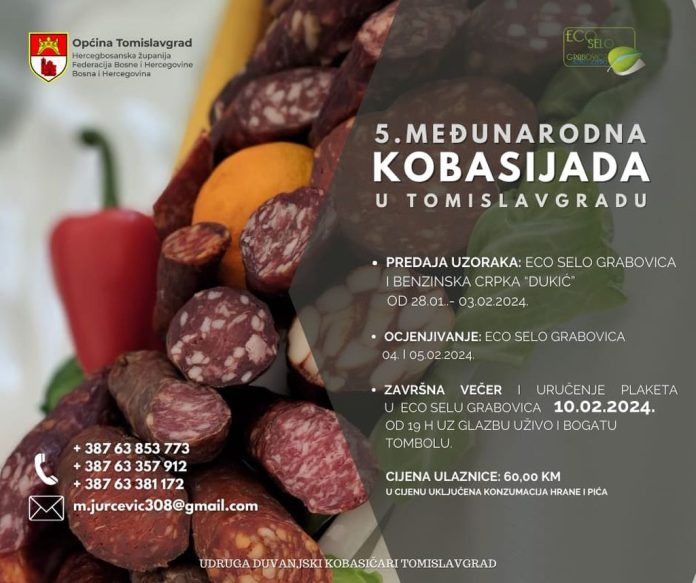 Svi zainteresirani za sudjelovanje na 5. međunarodnoj kobasijadi u Tomislavgradu, kobasice mogu donijeti do 5. veljače u Eko Selo Grabovicu ili na Benzinsku crpku Dukić.