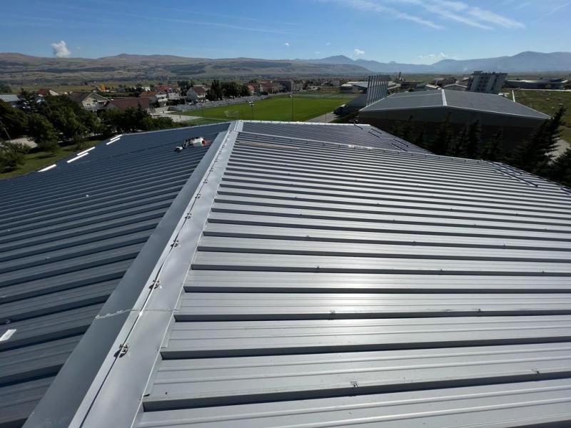 Na navedenom objektu izvršeni su radovi demontaže postojećeg pokrovnog lima, montaže krovnog termo panela i svih potrebnih opšava. Postavljene su i čelične penjalice, poklopni limovi, linijski snjegobrani te krovna gromobranska instalacija.