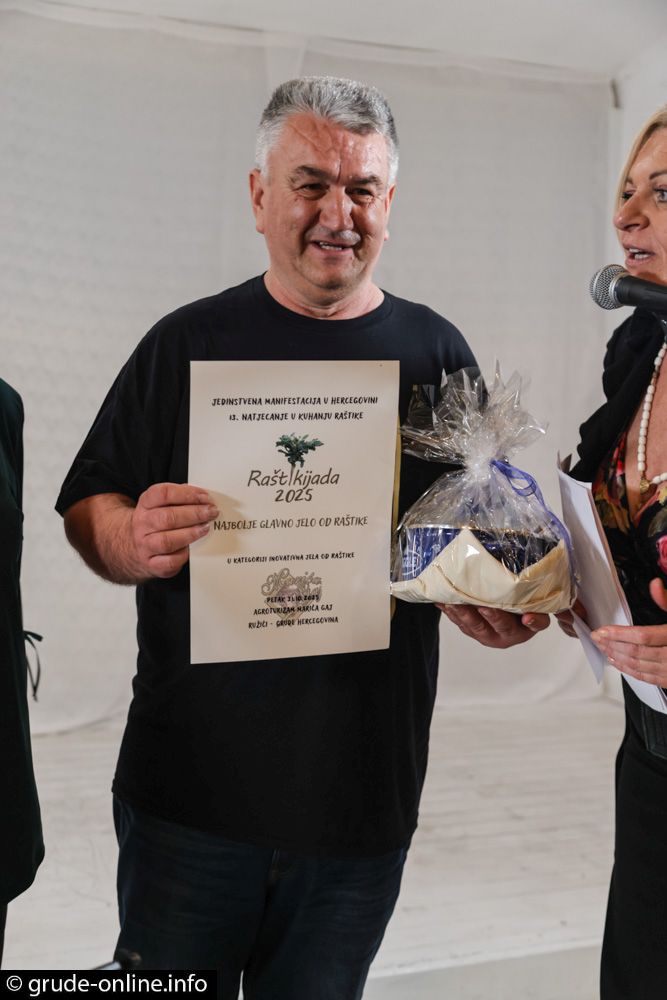 U petak je Agroturizam Marića gaj održana 13. po redu Raštikijade, manifestacije koja je i ove godine privukla brojne zaljubljenike u domaću kuhinju i hercegovačku tradiciju. Više od 2000 posjetitelja i 25 natjecateljskih ekipa okupilo se u ovom ambijentu, potvrđujući status Raštikijade kao jednog od najvećih gastronomskih događaja u Hercegovini, prenose Grude-Online.info.
