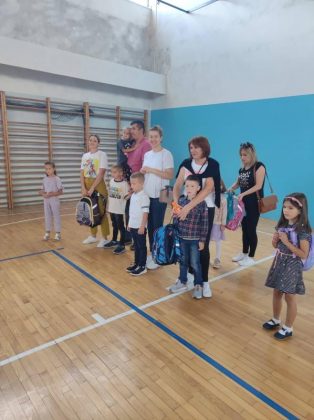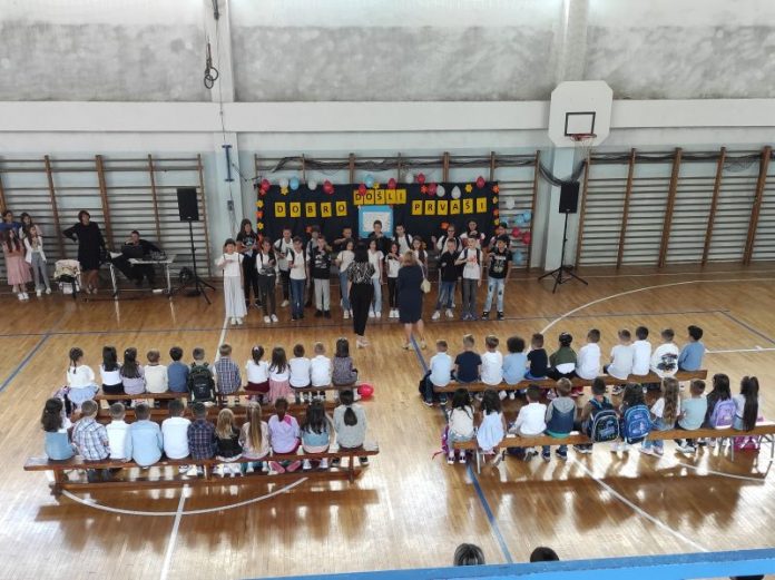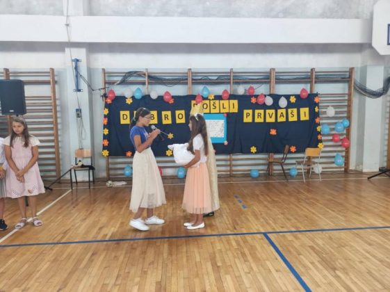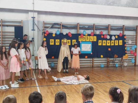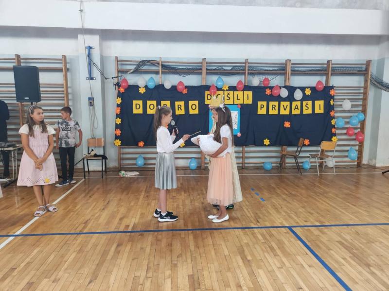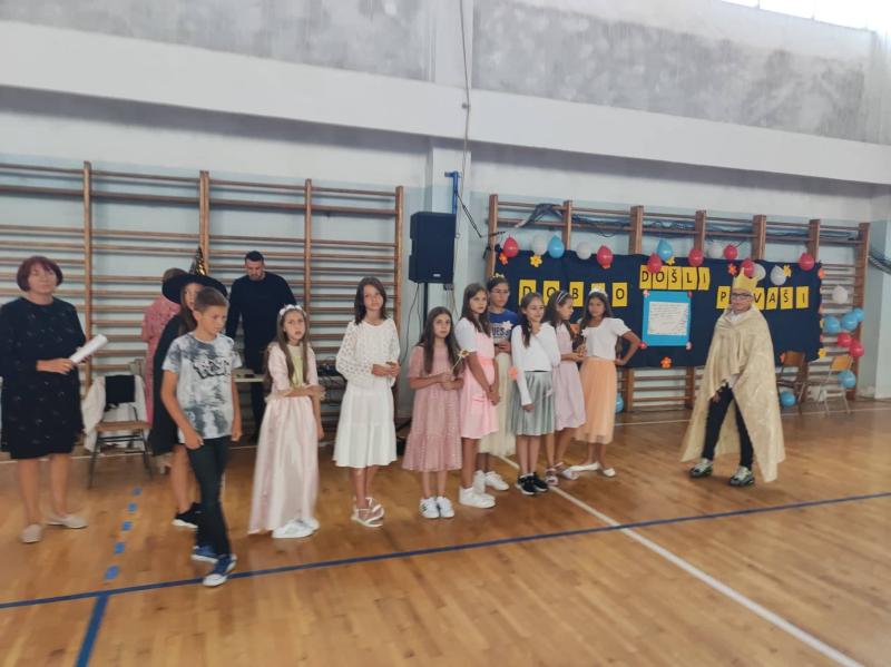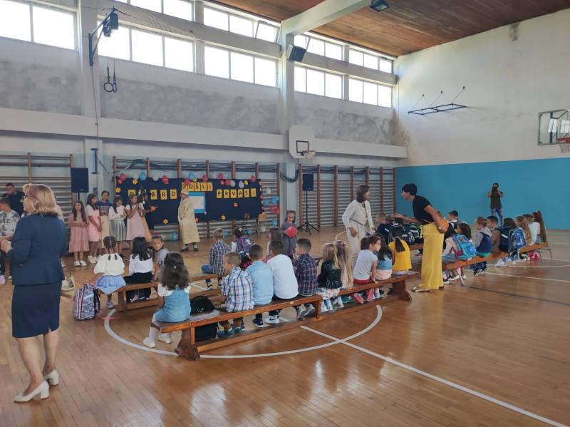 Dobrodošlicu u školu i sretnu školsku godinu prvašićima su poželjeli ravnateljica Milica Skočibušić, učiteljice Ivanka Tadić, Kata Bokanović i Marica Čamber, te općinski načelnik Ivan Buntić.