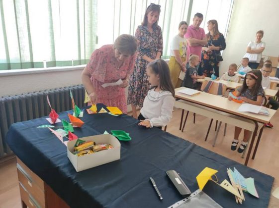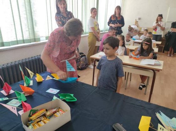 Toplim riječima dobrodošlice učiteljice su još jednom djeci poželje sretan početak školovanja uručivši im simpatične darove – brodice sa slatkišima i njihovim imenima.