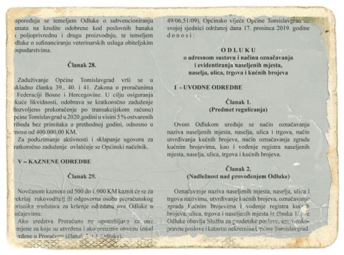 Pismo prenosimo u izvornom obliku kao i tekst Odluke o adresnom sustavu i načinu označavanja i evidentiranja naseljenih mjesta, naselja, ulica, trgova i kućnih brojeva (Službeni glasnik Općine Tomislavgrad“ brojevi: 4/19 i 3/22).