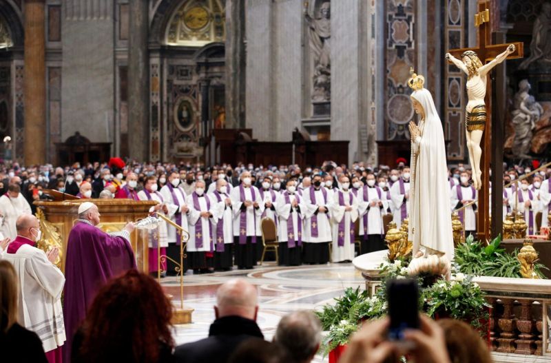 Papa Franjo predvodio je danas u Bazilici sv. Petra u Vatikanu pokorničko bogoslužje te posvetu čovječanstva, a osobito Rusije i Ukrajine, Bezgrješnom Srcu Marijinu.