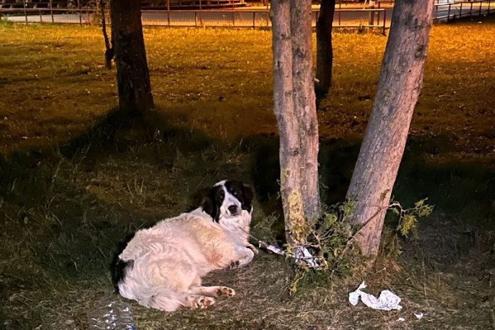 U dvorištu osnovne škole u Tomislavgradu, nakon današnje izložbe, ostavljen je svezan pas.
