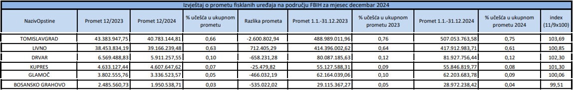 Iz Porezne uprave Federacije BiH izvijestili su o značajnom smanjenju fiskalnog prometa u prosincu 2024. godine u nekoliko gradova FBiH, te istražuju razloge. Jedna od pretpostavki je i da je na smanjenje prometa utjecala i neradna nedjelja u trgovinama.