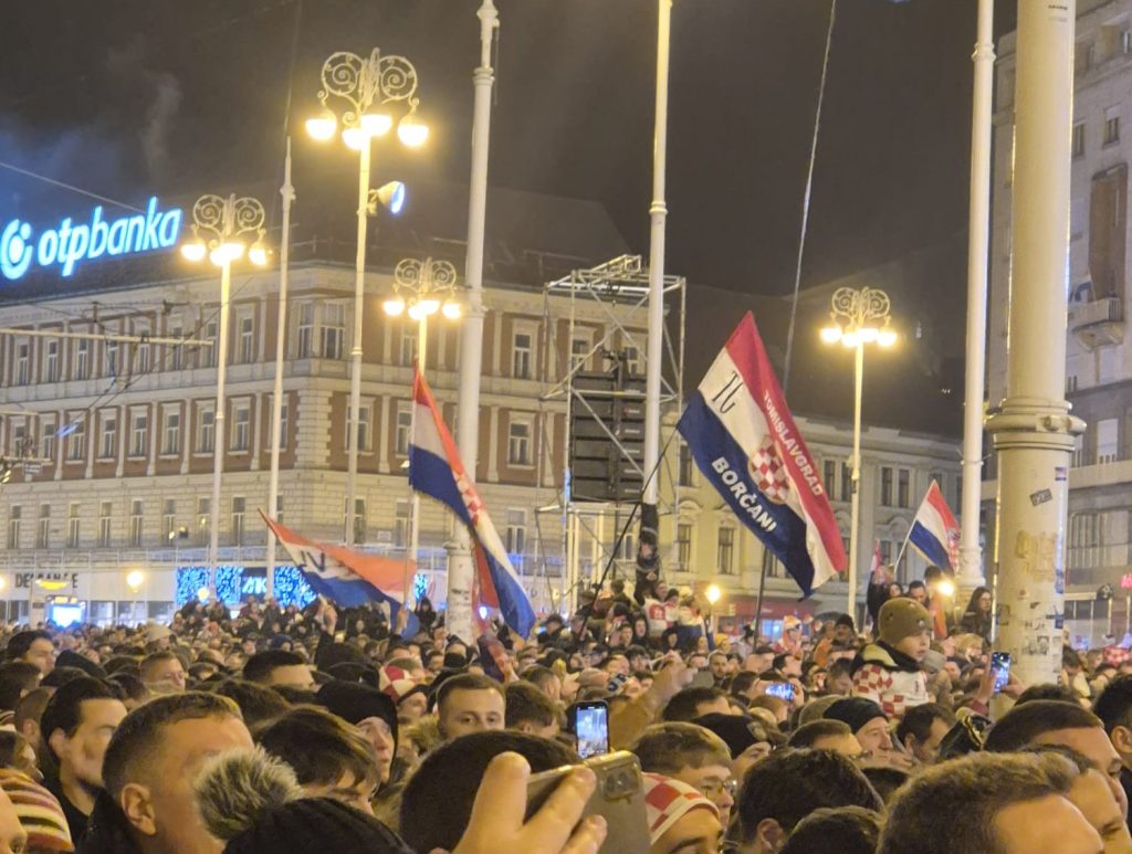 Tijekom Thompsonova nastupa, na jednoj od zgrada na Trgu bana Jelačića razvijen je transparent s natpisom “Ujedinjeni protiv fašizma”, dok su se među publikom mogle vidjeti zastave s prvim bijelim poljem te šalovi s natpisom “Za dom spremni”, prenosi Hina.