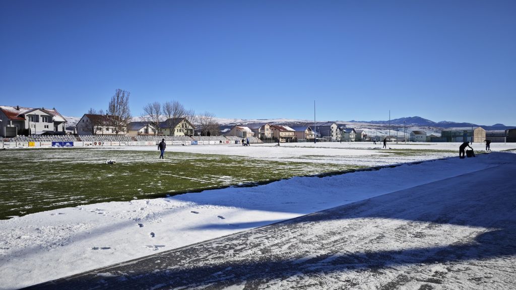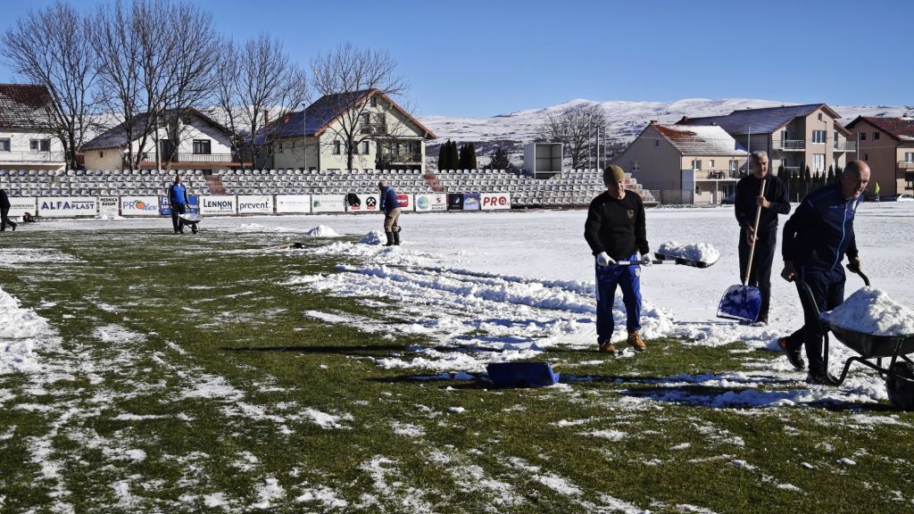 Danas od 13:30 sati na gradskom stadionu u Tomislavgradu igra se utakmica 15. kolo Prve lige F BiH između Tomislava i Goražda. Teren je prekriven sniježim pokrivačom. Iako snijega nema previše i iako je danas lijep i sunčan dan, temperatura od oko 0 stupnjeva nije dovoljna da se sam istopi. Stoga su članovi Uprave i prijatelji Tomislava odlučili ukloniti snijeg s terena i pripremiti ga za današnju utakmicu.