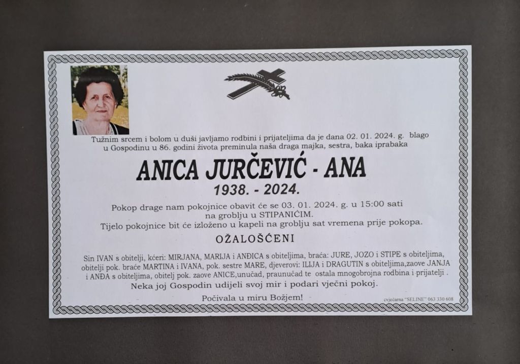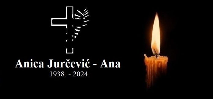 U utorak, 2. siječnja 2024. godine u 86. godini života blago u Gospodinu preminula je Anica Jurčević – Ana.