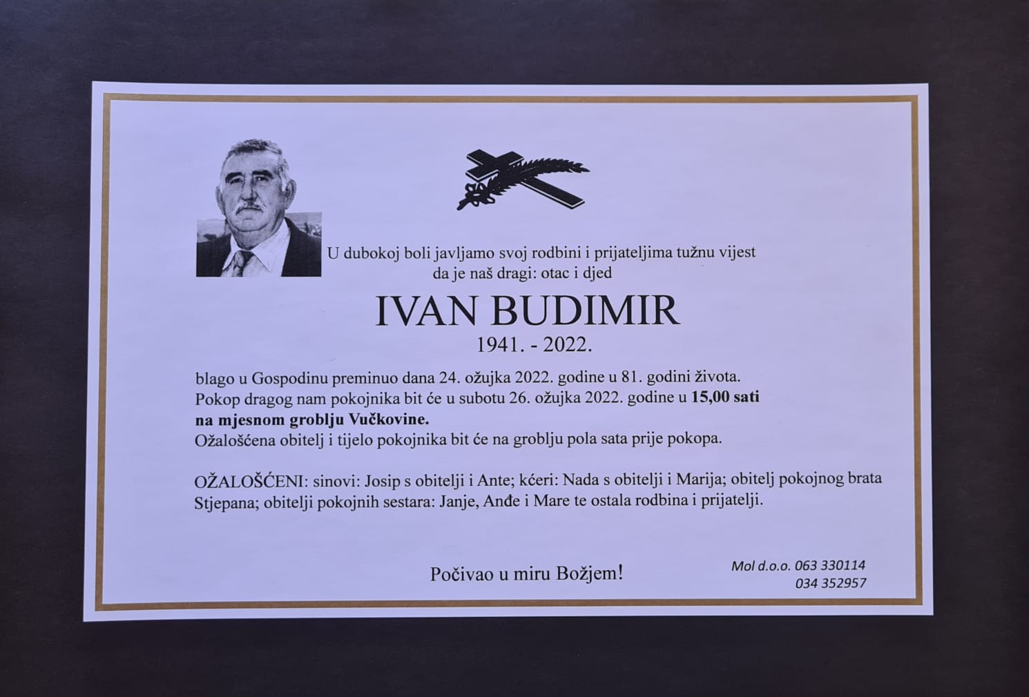 U četvrtak, 24. ožujka u 81. godini života blago u Gospodinu preminuo je Ivan Budimir.