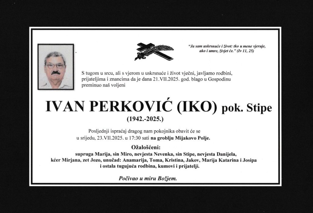 U ponedjeljak, 21. srpnja 2025. godine blago u Gospodinu preminuo je Ivan Perković – Iko.
