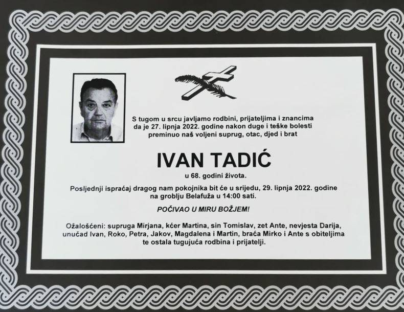 Obitelji pokojnoga Ivana upućujemo iskrenu sućut.