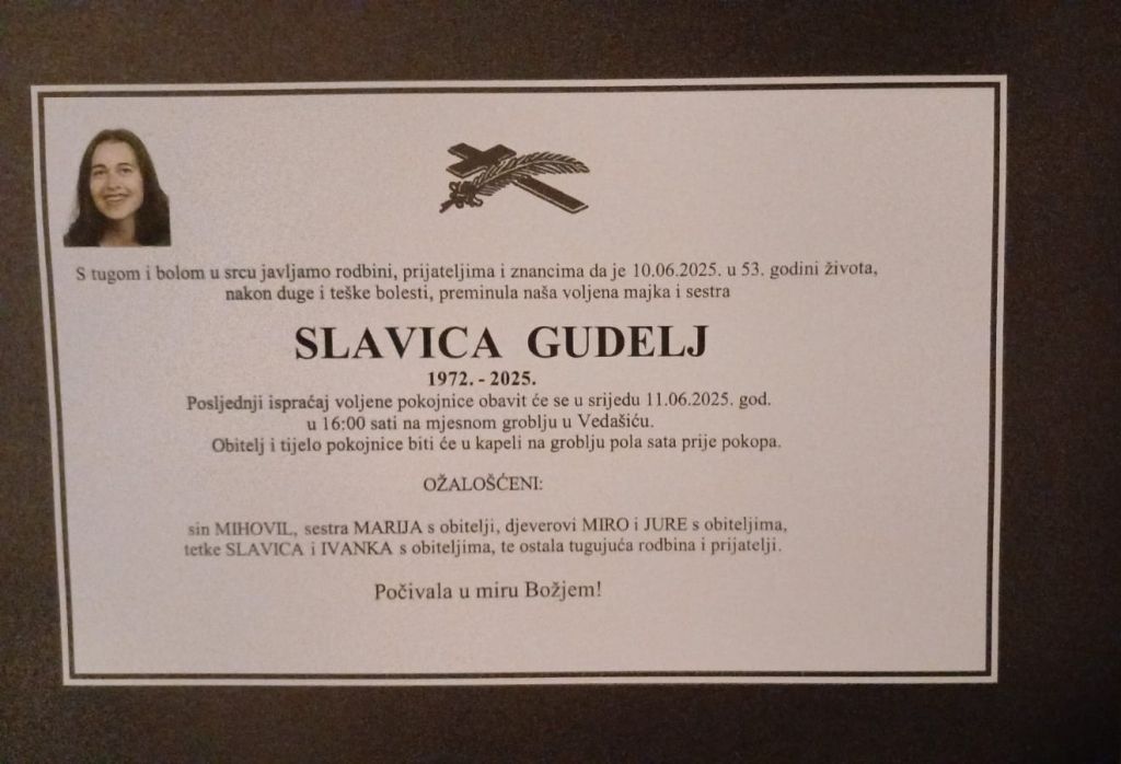 U utorak, 10. lipnja 2025. godine u 53. godini života, nakon duge i teške bolesti, preminula je Slavica Gudelj.