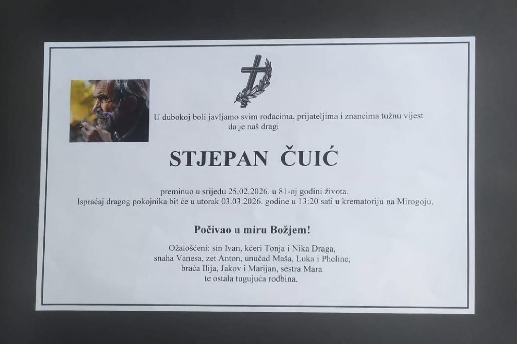 Posljednji ispraćaj pokojnika bit će u utorak, 3. ožujka 2026. u 13:20 sati u krematoriju na Mirogoju.