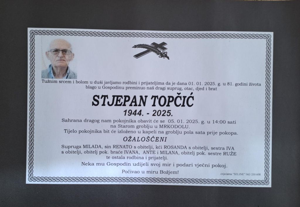 U srijedu, 1. siječnja 2025. u 81. godini života blago u Gospodinu preminuo je Stjepan Topčić.