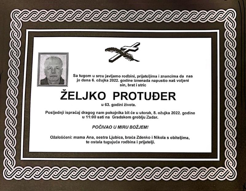 U nedjelju, 6. ožujka u 63. godini života iznenada je preminuo Željko Protuđer.