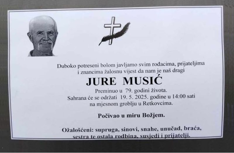U 79. godini života blago u Gospodinu preminuo je Jure Musić.