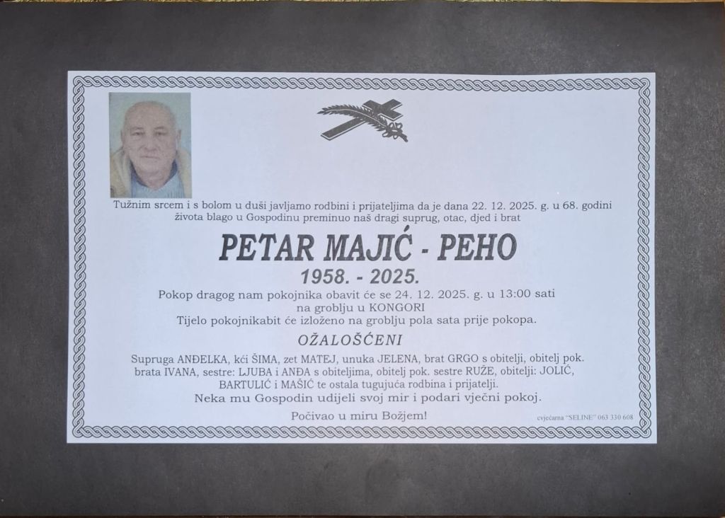 Obitelji pokojnoga Petra upućujemo iskrenu sućut.