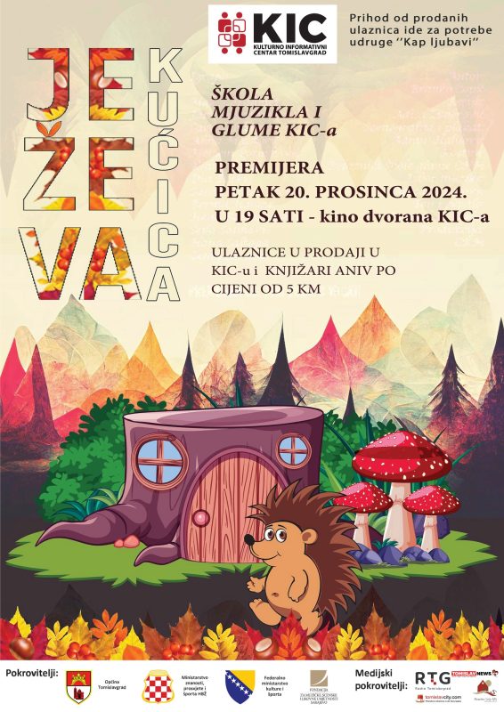 Premijera predstave ”Ježeva kućica” u izvedbi najmlađe skupine polaznika Škole mjuzikla i glume Kulturno-informativnog centra Tomislavgrad najavljena je za petak, 20. prosinca u 19:00 sati.