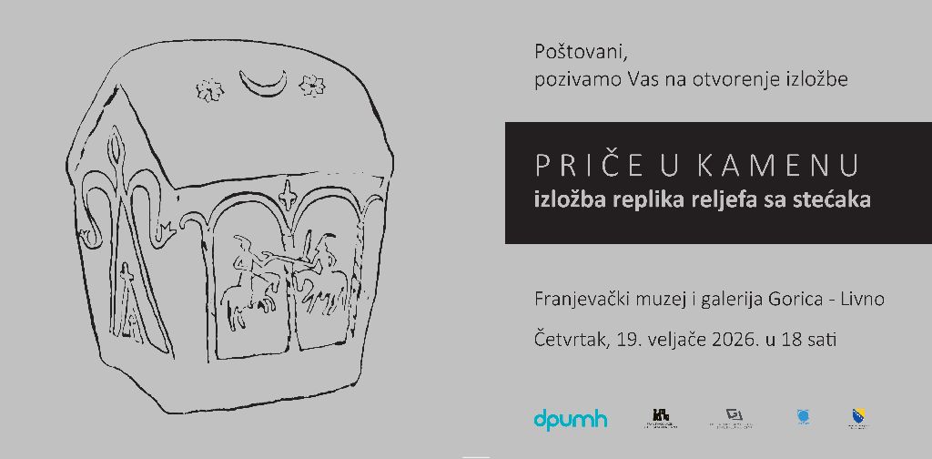 Naslovnica Kultura Priče u kamenu – izložba replika reljefa sa stećaka Kultura Priče u kamenu – izložba replika reljefa sa stećaka Objavio TC - 14. veljače 2026. Priče u kamenu – izložba replika reljefa sa stećaka bit će upriličena 19. veljače 2026. godine u Franejvačkom muzeju i galeriji Gorica – Livno. Otvaranje izložbe počinje u 18 sati. Svi ste dobro došli! VEZANI ČLANCIVIŠE OD AUTORA Kažem i ne lažem Fra Ante Pranjić o “Turističkom vodiču Tomislavgrada” Antonia Ćosić: KrakoGrad u TomislavGradu Pronađen zlatni prsten (vera) 21. travnja 2026. SSŠ Tomislavgrad: Petar Ćurić osvojio 3. mjesto na federalnom natjecanju iz... 21. travnja 2026. Fra Ante Pranjić o “Turističkom vodiču Tomislavgrada” 21. travnja 2026. MUP HBŽ: Policijski službenici rasvijetlili više kaznenih djela 21. travnja 2026. Javni poziv za sufinanciranje Projekata iz oblasti vodoprivrede na području HBŽ 21. travnja 2026.