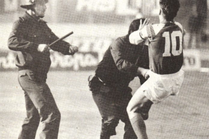 U tom metežu, tada 21-godišnji Boban, vidjevši policajca kako, prema nekim navodima, zlostavlja Dinamovog navijača, odlučio je reagirati. “Vidio sam da policija loše postupa samo s našim (Dinamovim) navijačima i postajao sam sve frustriraniji,” izjavio je Boban. Uslijedio je trenutak koji je ušao u legendu: Boban je pritrčao i koljenom u zraku udario policajca Refika Ahmetovića. Ahmetović je kasnije u intervjuima tvrdio da je mogao pucati u Bobana jer je imao napunjen pištolj i kolege su ga na to nagovarale, ali nije želio. “On me napao na radnom mjestu,” rekao je Ahmetović, dodajući da ga je tadašnji trener Dinama Josip Kuže spasio odvukavši Bobana.