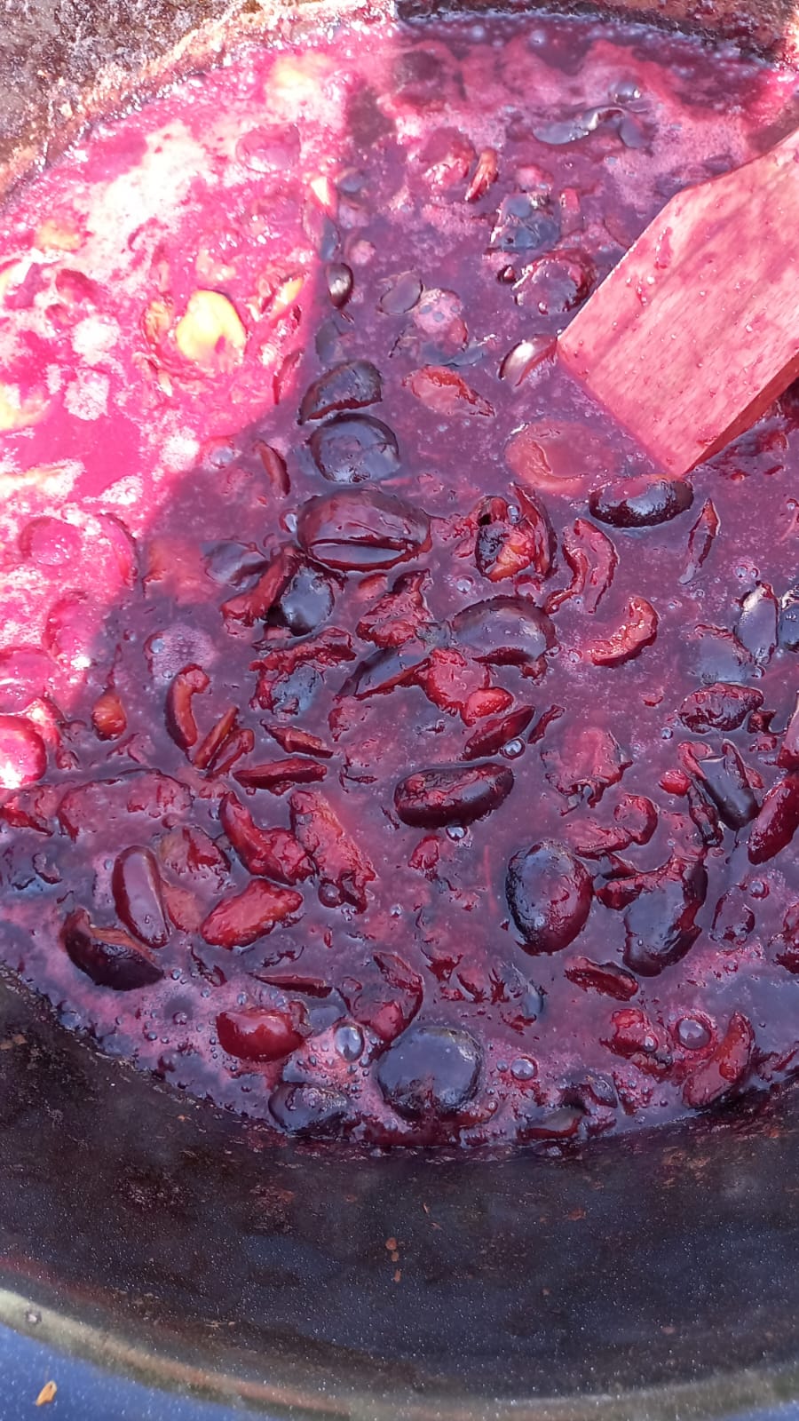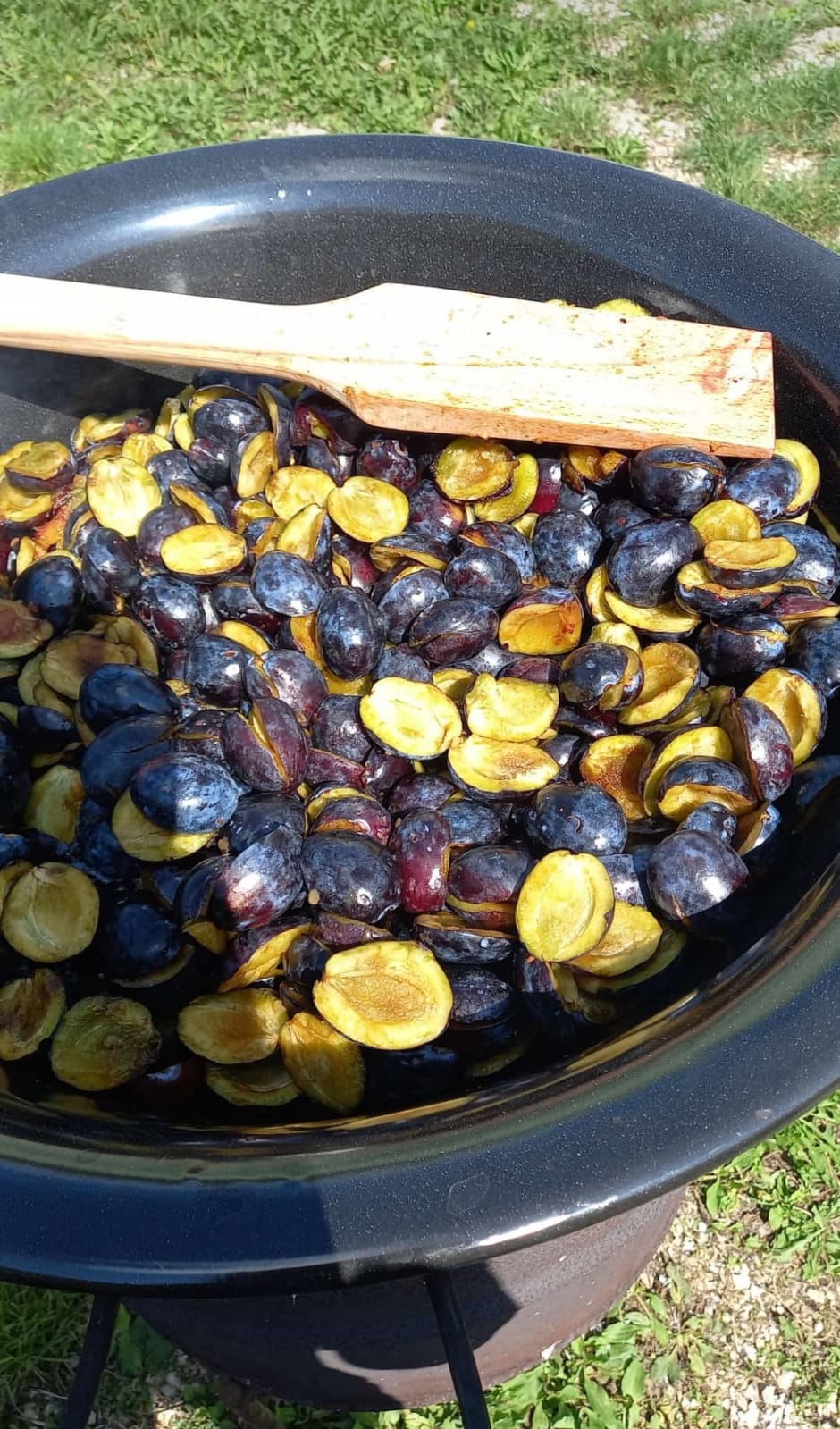 Ispred njezine kuće, u dvorištu, zatekli smo jednu mladu i simpatičnu gospođu kako priprema pekmez od šljiva. Zamolila nas je da ne slikamo nju, ali možemo slikati proces izrade pekmeza te nam je ispričala način na koji ga priprema.