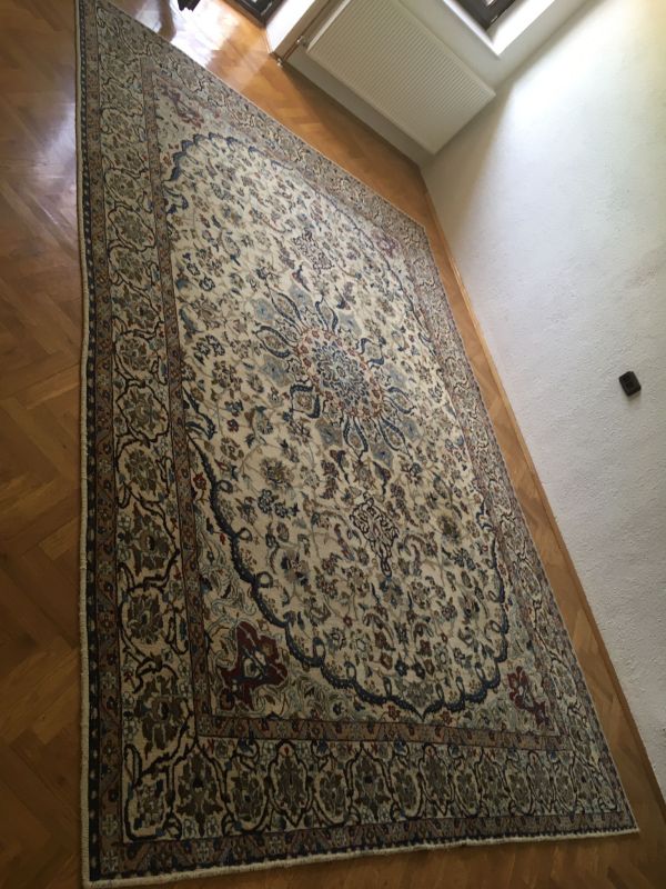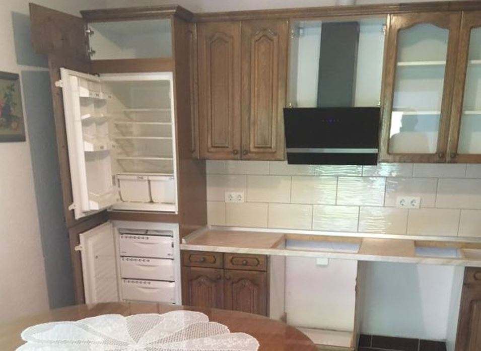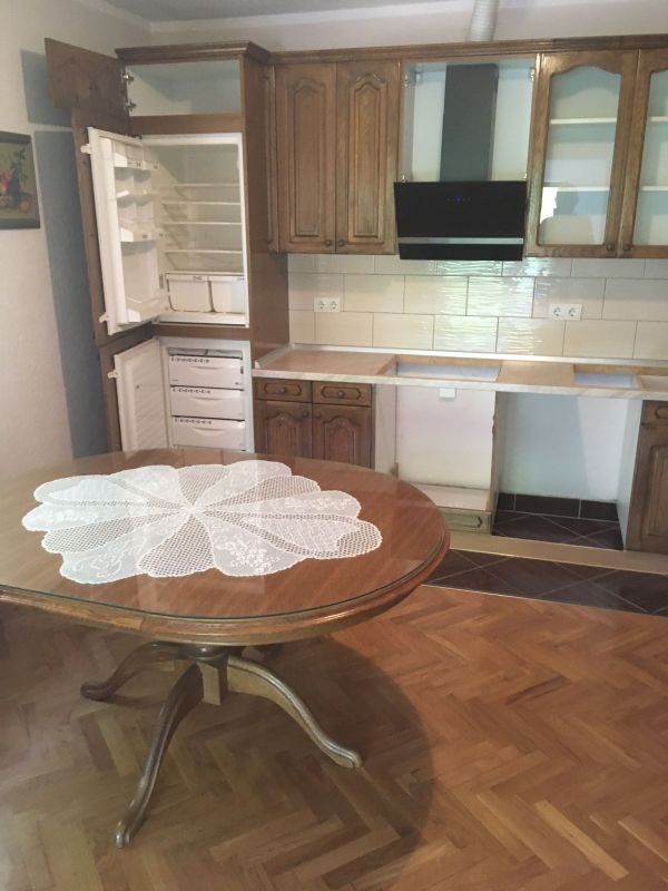 Prodaje se kompletna kuhinja s kuhinjskom napom i ugradbenim hladnjakom, kuhinjski stol i šest stolica te perzijski tepih.