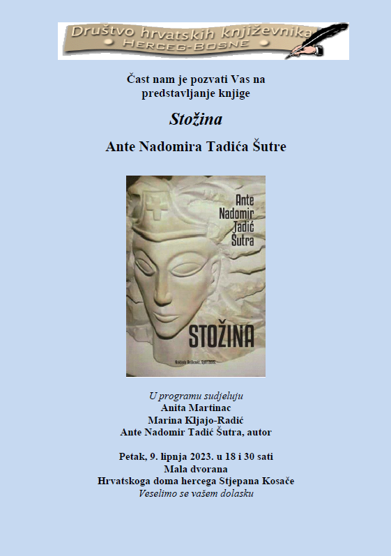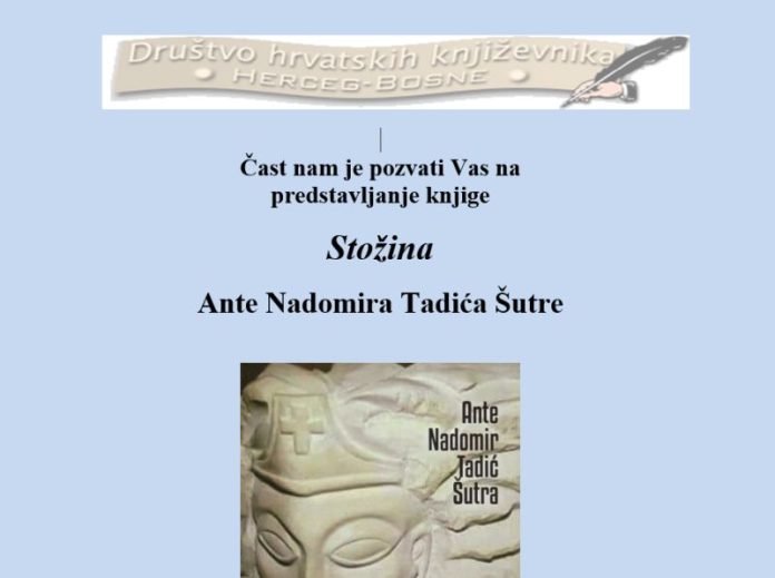 Društvo hrvatskih književnika Herceg Bosne organizira predstavljanje knjige “Stožina” pjesnika Ante Nadomira Tadića Šutre.