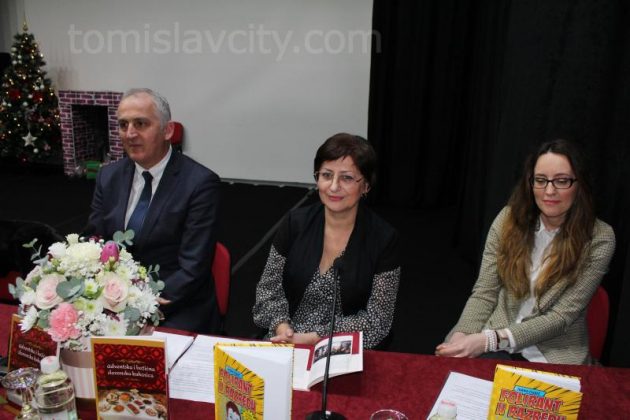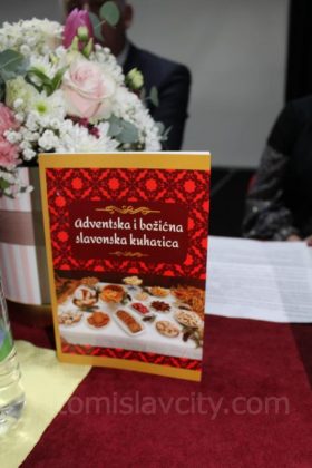 Publika je večeras mogla ponešto doznati i o slavonskoj kuhinji budući da je predstavljena i knjiga SSŠ Antuna Horvata iz Đakova „Adventska i božićna slavonska kuharica“ koja sadrži 45 recepata s jelima a koja se u Slavoniji spravljaju za Badnjicu i Božić. Među njima je i „božićni kruh“- koji pomalo pada u zaborav. O ovoj knjizi i njezinu nastanku govorile su Antonija Bilić i Maja Breulj iz Đakova.