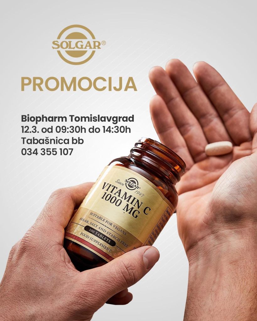 Besplatno mjerenje vitaminsko-mineralnog statusa organizma uz podršku Solgara, održat će se sutra, 12. ožujka, u Biopharm ljekarni u Tomislavgradu.