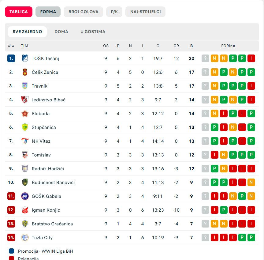 Nakon 9. kola Tomislav zauzima 8. mjesto na prvenstvenoj ljestvici s 12 bodova.