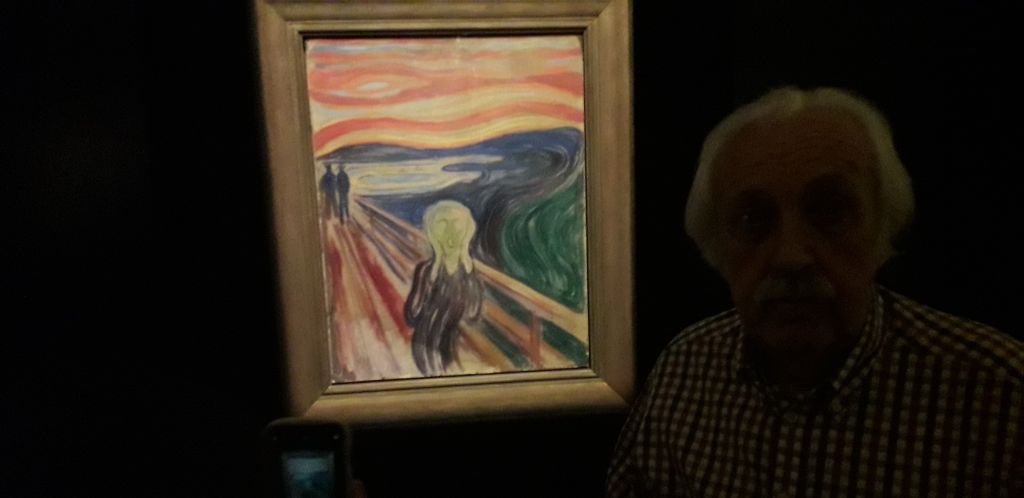 Poslije toga otišli smo u muzej Munck pogledati čuveni sliku – Krik. U prostoriji gdje je ta slika je mrak. Nema blicanja, ni slikanja. Krik je osvjetljen blagim svjetlom, pa se ta velebna slika doima kao da izranja iz neke sumaglice poput ljudskog lica. Gledajući tu čudesnu sliku učinilo mi se da bih i ja mogao tako nešto nacrtati. Što je čini tako poznatom i skupom? Na to pitanje nisam našao odgovor, kao što nisam našao odgovor gledajući Lenoradovu Giocondu ili Michelangelovu Gospu s Isusom u naručju. Druge slike nisam imao volju gledati, a ne znam zašto. Htio sam vidjeti tu sliku Krik i kod nje se uslikati, što sam i uspio. Iz Munckova muzeja otišli smo Ivo i ja u Biblioteku. Kolosalna zgrada i u njoj 990 tisuća knjiga. Na štandu za informacije upisao sam moje ime i prezime i čekao da provjeri lijepa Inga. Nakon nekoliko minuta reklami je da se kod njih nalazi 15 mojih knjiga. Od mojih dvadeset knjiga tamo je petnaest. Bože blagi i dragi baš mi je bilo milo kad sam to doznao. Onda sam napisao ime Stipe Čuića, moga zemljaka i prijatelja i lijepa Inga mi je rekla da se u toj biblioteci nalazi 12 njegovih knjiga. Reću to Stipi čim ga vidim na Docu u Zagrebu. Inga nam je kazala da nema pisca čije knjige nema u ovoj golemoj knjižnici.