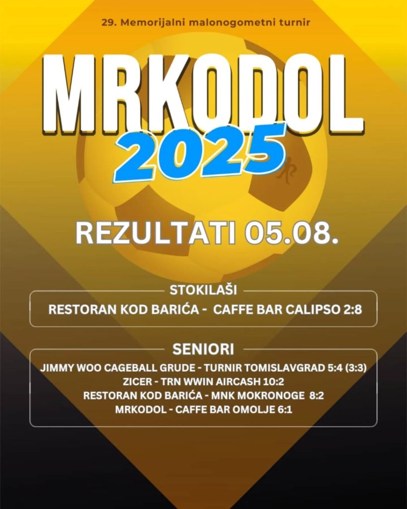 Dragi pratitelji i sudionici Memorijalnog malonogometnog turnira, donosimo vam raspored utakmica za danas (6.8.2025.) te rezultate jučerašnjih susreta (5.8.2025.)