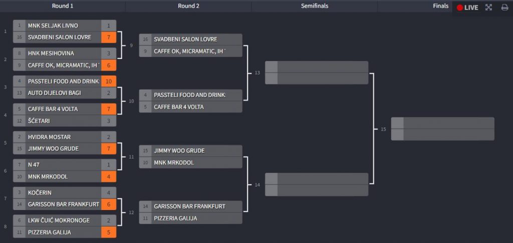 Kostur natjecanja možete pratiti na sljedećem linku: https://challonge.com/r952i4lg