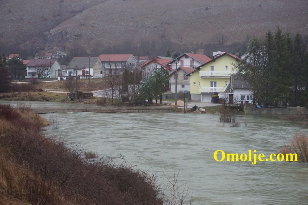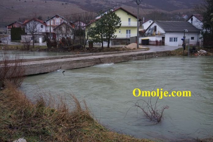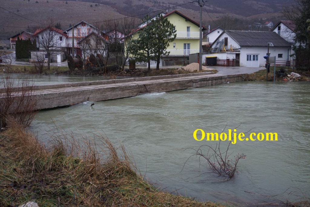Nakon obilnih padalina koje su trajale protekla dva dana, došlo je do naglog porasta vodostaja Ričine. Već tijekom jučerašnjeg poslijepodneva korito se počelo puniti, a razina vode nastavila je ubrzano rasti. U jutarnjim satima 5. siječnja, vodostaj kod mosta u Omolju premašio je maksimalno dopuštenu razinu, što je dovelo do izlijevanja rijeke i plavljenja okolnog zemljišta, piše Omolje.com.