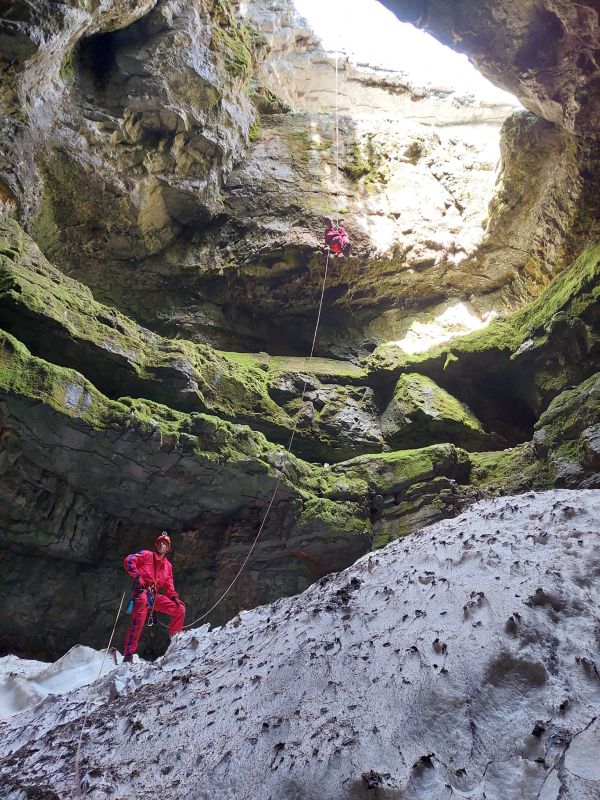 Prva na redu je bila Ravna jama koja se nalazi na 1315mnv, a prema speleološkom nacrtu duboka je 30 metara, te joj je dno u potpunosti prekriveno velikim slojem snijega. Iako smo se provukli kroz pukotine između zida i snijega, nastavka jame nije bilo.