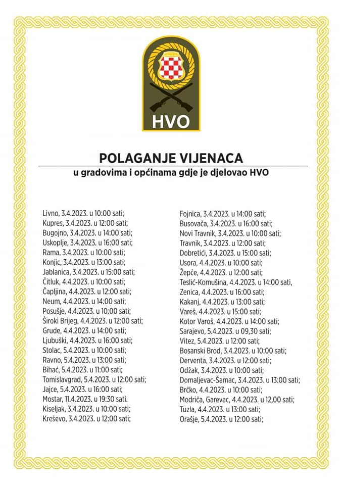 U srijedu, 5. travnja predviđeno je paljenje svijeća i polaganje vijenaca u Tomislavgradu. Kako je uobičajeno u ovakvim prigodama, svijeće i cvijeće bit će ispred središnjeg spomen obilježja, a program će početi u 12 sati.