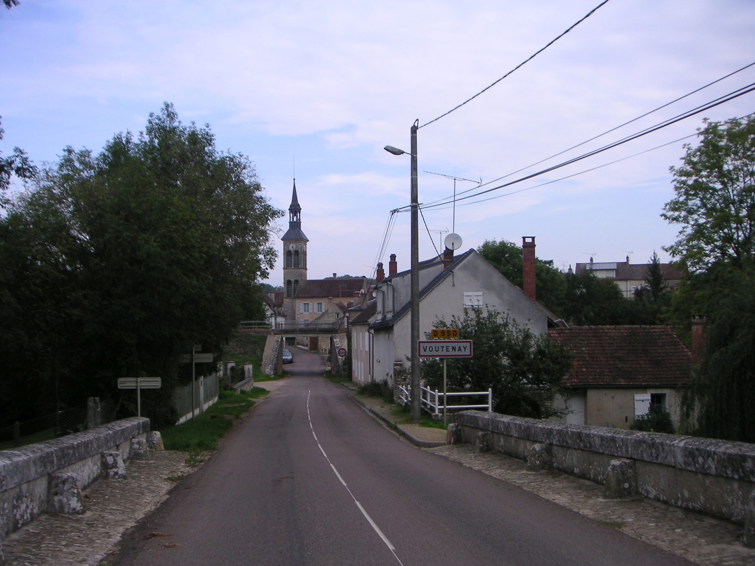 Dolazim na raskrižje, koje nije naznačeno na mojoj karti pa konzultiram „Žaklinu“ i izaberem najkraći put, koji vodi ponovno u dolinu. Srećem tek dva tri auta. Dolazim do rijeke i prelazim na drugu stranu u selo Voutanay, odakle me put vodi širokom cestom. Nije baš najljepše ići takvom cestom, ali je najkraći put tuda pa nastavim. Sitna kiša povremeno pojača pa moram razapeti kišobran. Crven je pa me automobilisti mogu lakše primijetiti, mislim u sebi.