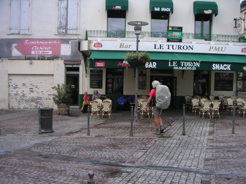 Dolazimo u La Reole oko 15 sati i na jednoj terasi u centru grada nađemo Fredyja s još dva hodočasnika – Claire i njezina muža Christiana. Zovu nas da se zaustavimo, što i učinimo pa popijemo pivo zajedno s njima. Oni su svi iz istoga mjesta u Belgiji pa će sada nastaviti put zajedno do Compostele. Idemo zajedno do turističkog ureda, gdje svi dobivamo pečat, a ja i svoj kofer. Pitam gdje se nalazi kuća u kojoj mi je Brigitte našla prenoćište i djevojka mi daje plan grada, na kojem mi naznači put. Kuća je udaljena oko kilometar i pol. Uputim se odmah dok drugi još čekaju svoj taksi koji će ih odvesti do njihovih prenoćišta. Ulica je prekrivena kaldrmom pa imam velikih problema vući svoj kofer iza sebe. Crn je i velik, moj kofer. Skoro kao onaj mrtvački sanduk koji je Clint Eastwood teglio kroz čitav film i u kojem se na kraju ispostavilo da ima mitraljez. „Ma i ja bih poželio da ga imam pa da potprašim malo sve one hotelijere koji zatvaraju hotele a da nikoga ne obavijeste. Naime ni u turističkom uredu nisu znali da je hotel zatvoren definitivno. Teglim ja svoju koferčinu najprije nizbrdo, a onda uzbrdo. Stignem pred kuću sav znojan i bez daha. Zvonim i uskoro mi neki stariji čovjek otvori vrata. Predstavim se pa me pusti da uđem. „Morate skinuti cipele i ostaviti ih u hodniku!“ odmah mi reče. „Pa čiste su, jer sam danas išao stalno cestom“, odgovorim. „Bez obzira na to jesu li čiste ili nisu, morate ih skinuti! A bilo bi najbolje kad biste i kofer ovdje ostavili.“ „Možda su Turci“, pomislim pa poslušno skinem cipele. Možda je soba prekrivena perzijskim tepihom. Stari me povede uza stepenice do uskog hodnika na kraju kojeg mi otvori vrata „sobe“ koja više sliči na ćeliju – na sredini uski krevet, a sa strana možda pola metra prostora. „Prozor“ 25 x 25 cm i 70 cm dubok, izgleda kao puškarnica. E sad znam zašto sam morao izuti cipele – nema mjesta za njih.