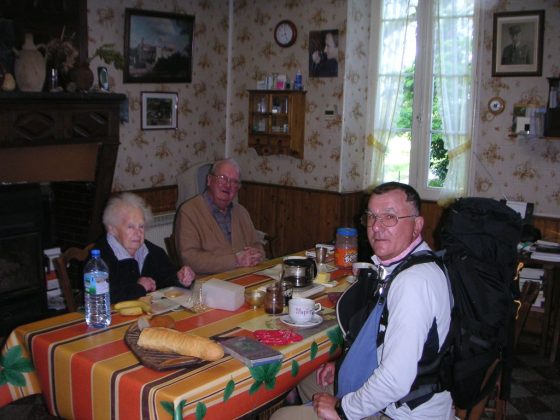 Zajedno s Bernardom idem u kuhinju i pomažemo starom pripremiti večeru. Starica se odmara. Muž nam veli da starica pati od Alzheimerove bolesti i da mu to pričinjava puno problema, jer zaboravlja čak uzimati lijekove. Mi se čudimo što oni u tim godinama još izdaju sobe. „Ma davno bih ja prestao da u selu ima neko drugo prenoćište za hodočasnike“, veli nam starac. „Općina je davno obećala nešto napraviti, ali do sada nije ništa. A hodočasnike ne možemo jednostavno ostaviti vani jer u okolici od 20 kilometara nema drugog prenoćišta.“ Bernard to potvrđuje jer je pokušao naći prenoćište u okolnim selima bez uspjeha. Stari je još dobar na nogama, a i duh mu je mlad pa provedemo ugodne trenutke za vrijeme večere. Pomognemo mu oprati suđe i onda idemo spavati.