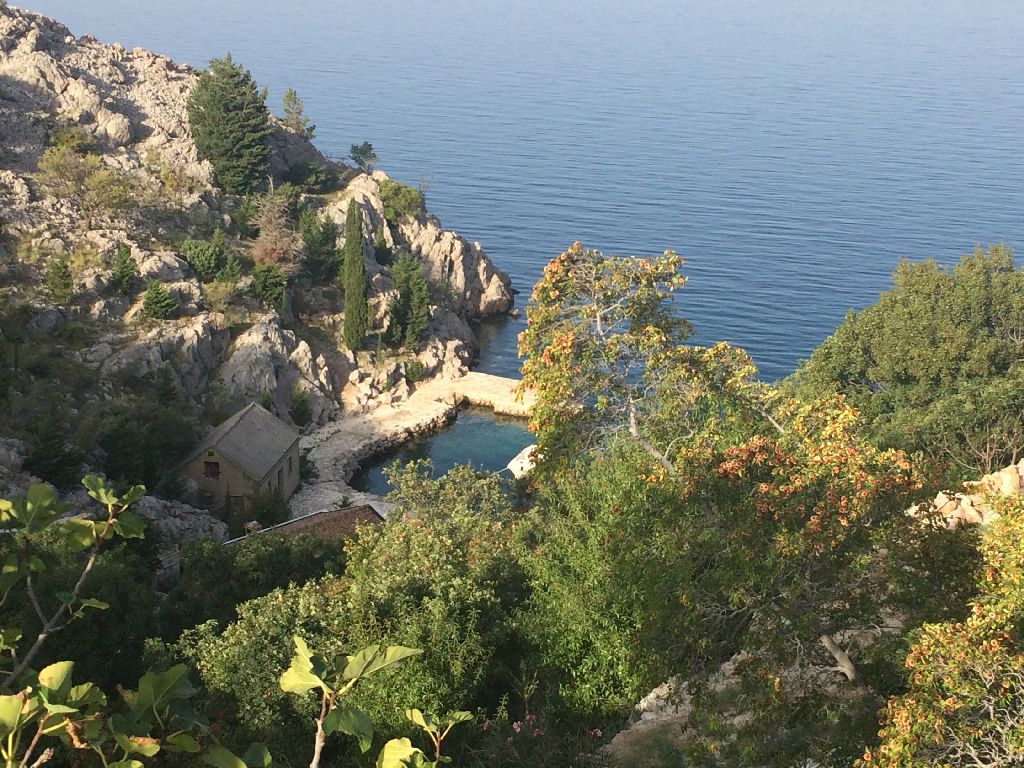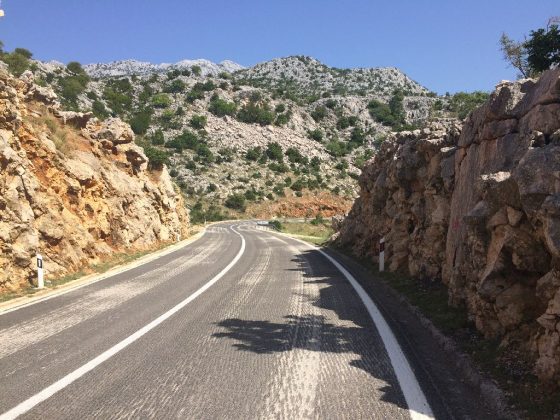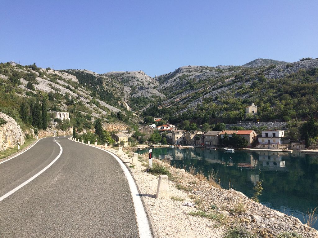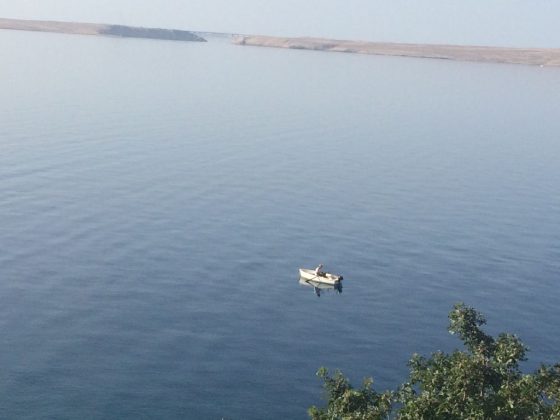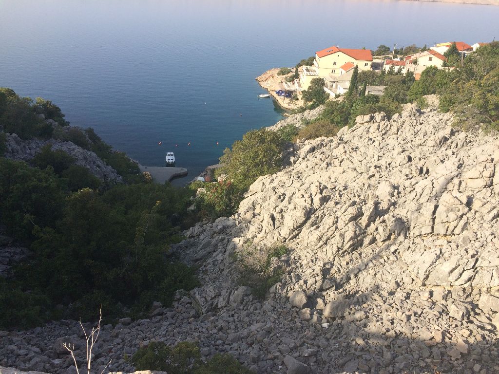 Čini mi se da prebrzo idem. Sunce je nemilosrdno. A s lijeve strane goli kamen kao zrcalo vraća sunčeve zrake prema meni. Desno more također kao zrcalo čini to isto. Asfalt užaren.