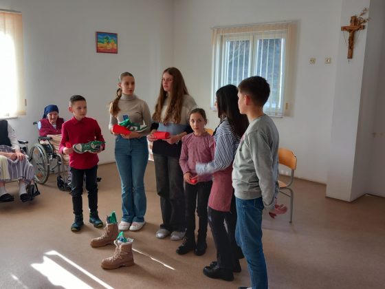Učenici OŠ fra Mijo Čuić Bukovica danas su, u pratnji svojih učiteljica i nastavnika, posjetili Starački dom u Tomislavgradu kako bi s njihovim štićenicima u ovo blagdansko vrijeme podijelili svoju radost, izmijenili poneki topli zagrljaj i lijepom riječju ugrijali dušu. Susret je započeo molitvom koju je izrekla prvašica Marija Bagarić nakon čega je dramska skupina izvela igrokaz „Fala ti sveti Nikola“.
