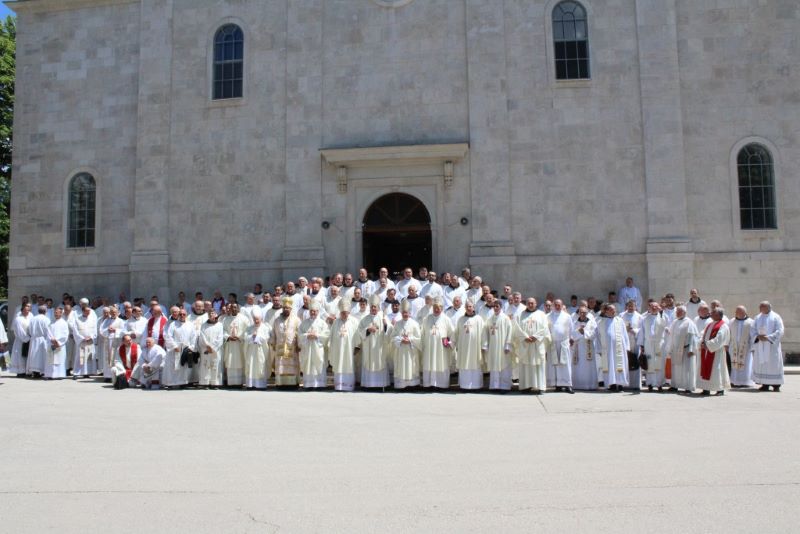 Vrhunac susreta bilo je svečano Euharistijsko slavlje koje je predvodio nadbiskup Vukšić u zajedništvu s nazočnim biskupima i uz koncelebraciju svih okupljenih svećenika. Pošto je pozdravio sve okupljene pozvao je da se ujedine u molitvi. „Na prvomu mjestu molimo neka dragi Bog blagoslovi svih nas 553 svećenika i 15 đakona koji u ovom času djelujemo na području naše Biskupske konferencije, a također i svih 764 svećenika člana naših biskupijskih i redovničkih zajednica, kako bismo mogli nastaviti i vjerno obnašati svoje služenje sve dok je volja Božja da budemo među njegovim narodom. Na drugomu mjestu, Božjemu milosrđu preporučamo svoju pokojnu braću koji su umrli od našega prošlog susreta pri tri godine do danas… Iz istog izvještaja proizlazi da je danas, dok slavimo ovu svetu Misu, na području naše Biskupske konferencije 33 svećenika manje negoli početkom lipnja 2019. godine. Taj podatak sam po sebi govori vrlo mnogo, ozbiljno opominje te poziva i priziva Isusove riječi: „Molite, dakle, gospodara žetve da pošalje radnike u žetvu svoju“ (Mt 9,38)“, kazao je nadbiskup Tomo.